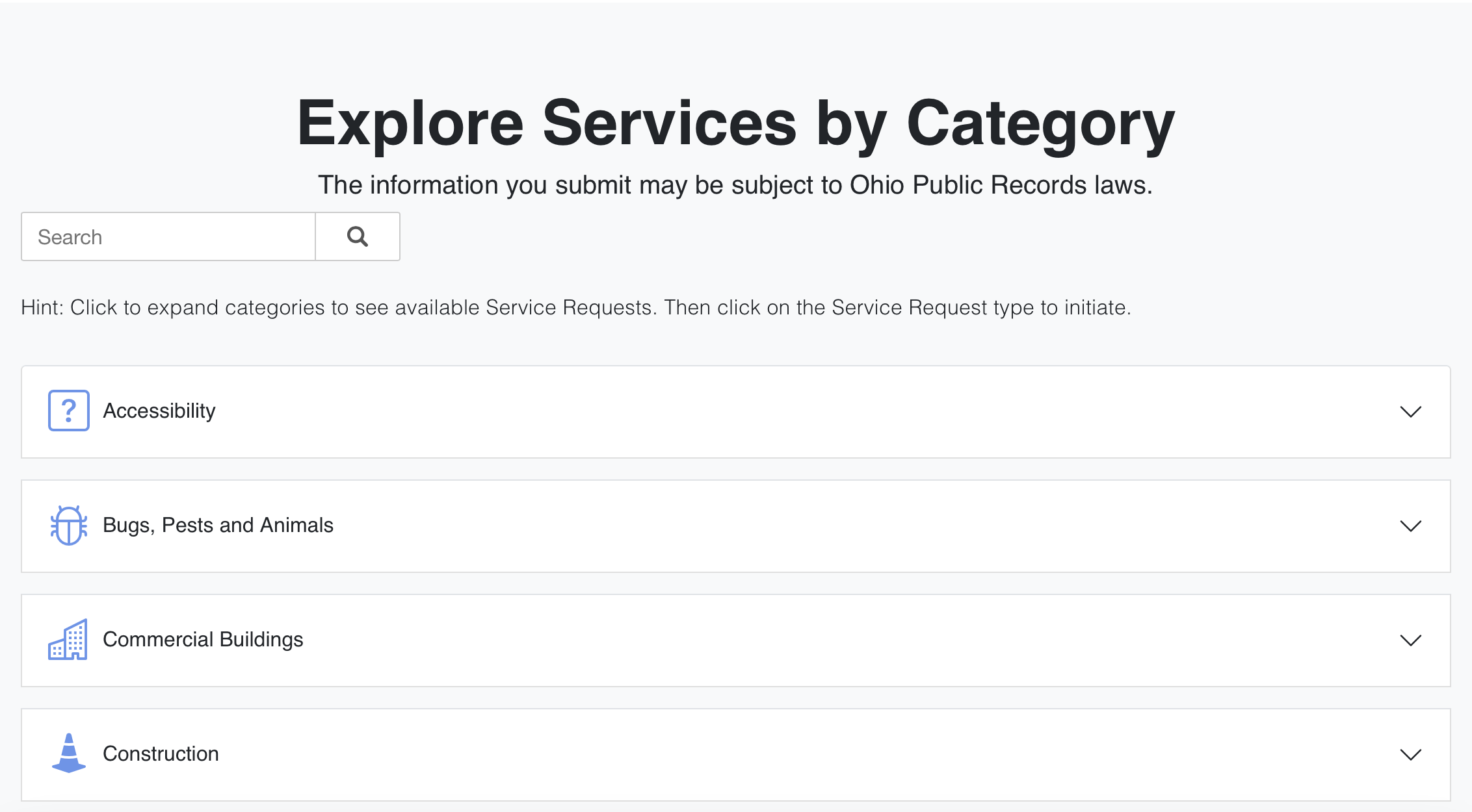 The service website provides four essential ways to request services. After seeing the four main categories, you may have your own ability to use keywords to search for services and search for the existing services that you requested before. The “Frequently Used Service Requests” highlight that most people living in the Cincinnati area used services to match what they might want to ask. The bottom section which is “Explore Services by Category” is very helpful for inspiring people who need ideas to start their requests. Each category has an icon nearby to make their information for users to easily understand.