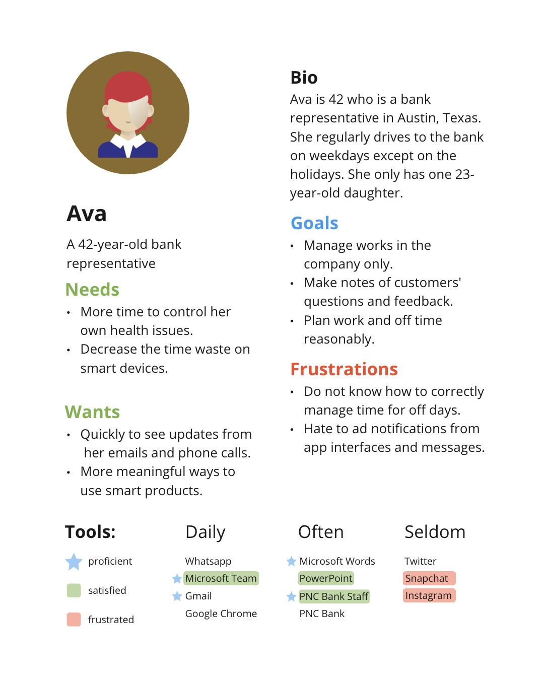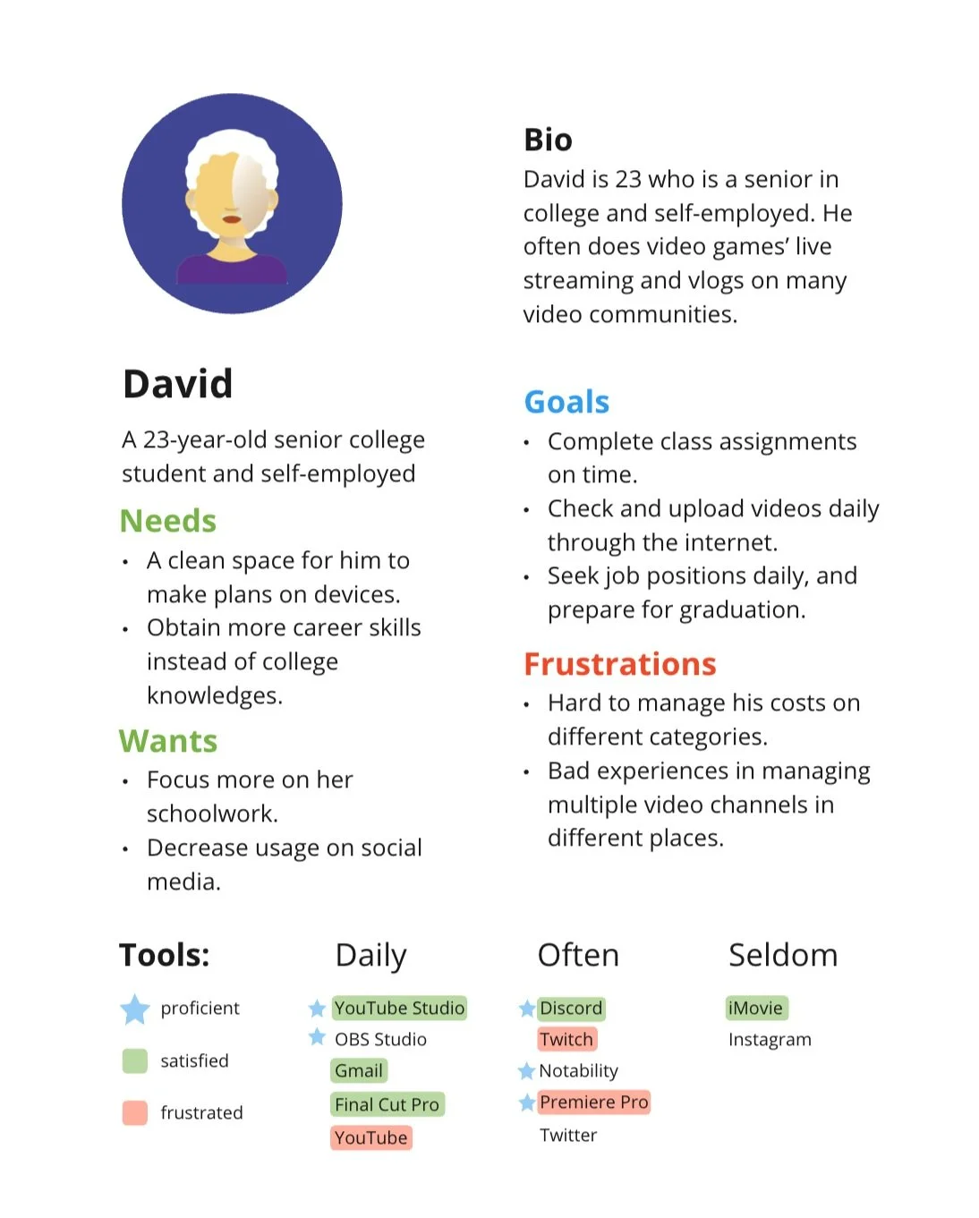 Our initial research was doing a competitive analysis with three different financial health apps. Plus, we have secondary research was a literature review. We searched different academic articles about financial health-related measurements and how financial health is important for people to enrich their lives. Finally, we are interviewing three people who "orbit around" the interviewer's personal profile. Then, the researcher synthesized the findings and notes. The session took anywhere from five to ten minutes for each participant. Video and audio were recorded. Participant videos or onscreen interactions can be recorded for this research with approval.