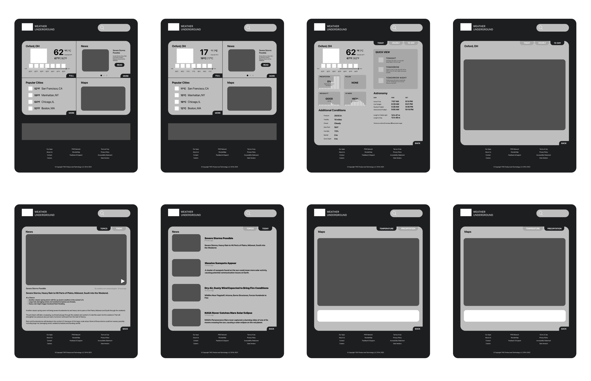Weather Underground is a destination for finding information on all things weather-related news on weather-related events, the local weather information, a forecast for an upcoming trip, etc. When we took the first look at the website, the outdated website design and all the ads surrounding the information represented a bad experience for users to check the weather. Our mission is to use UX research methods to conduct a redesign solution to bring a whole new life.